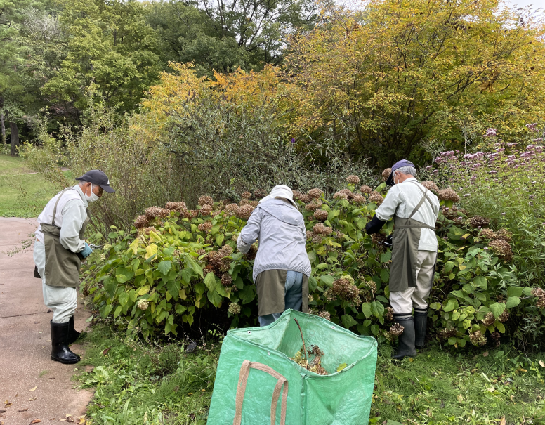 スタッフブログ10/18 緑育俱楽部in茶臼山自然植物園2022.10.21 バタフライガーデンの切り戻しをしました! アナベルのはながらを切りました✂ アナベルの花芽は、来年に芽吹くので今の時期に小さく切りつめたり、すいても大丈夫です! 役目を終えたフジバカマ?ヒヨドリバナ?など、お花のおわった様々な宿根草を切り戻しました。 似た者同士で種類が断定ができていないのですが、フジバカマかヒヨドリバナがまだ咲いていますので、ぜひ足をお運びください! 投稿ナビゲーション