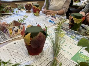 篠ノ井中央公園や茶臼山自然植物園に咲いているお花をたっぷり使って、秋のアレンジ🪻