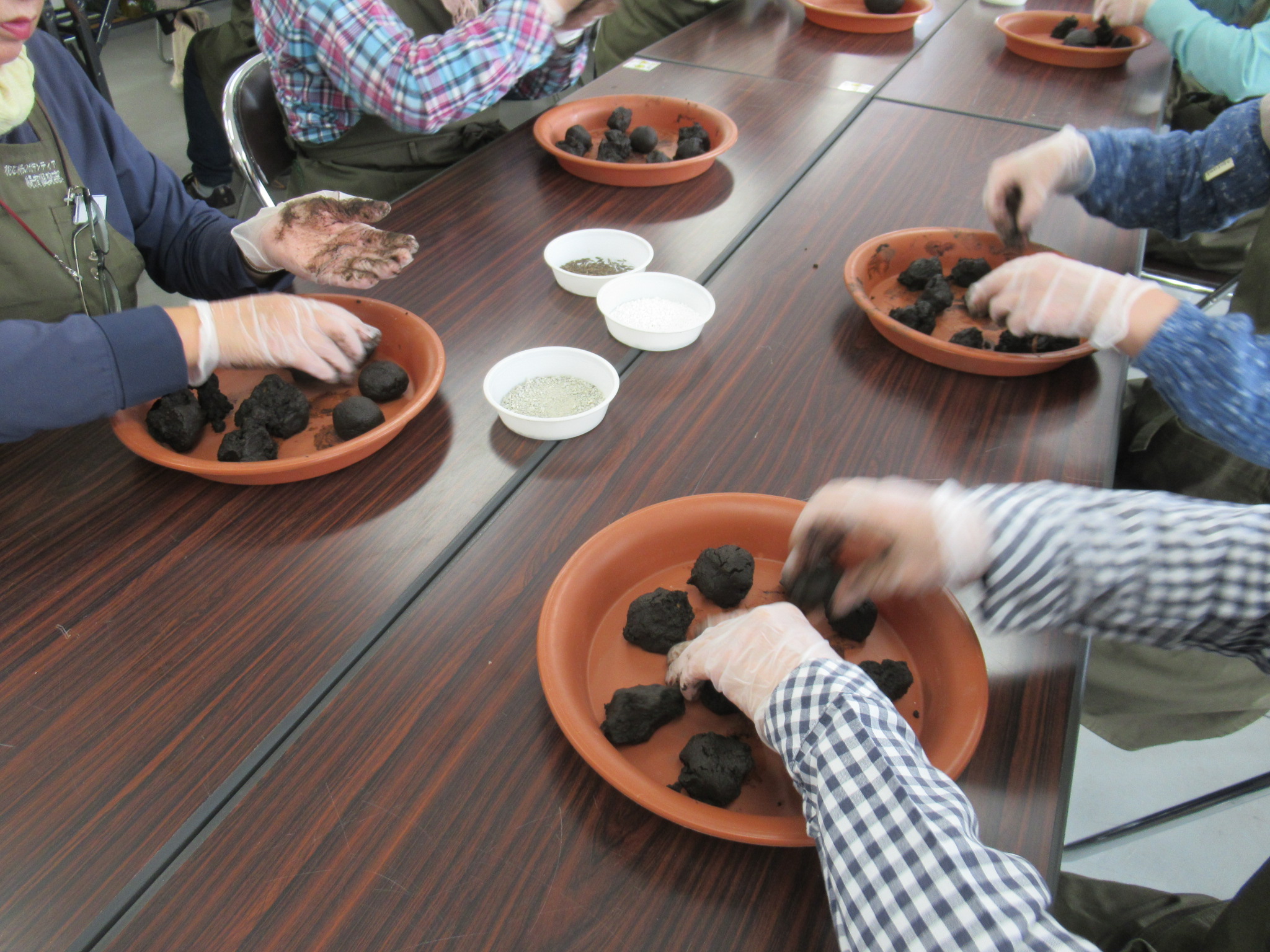 植栽面ではタネ団子に初挑戦しました。