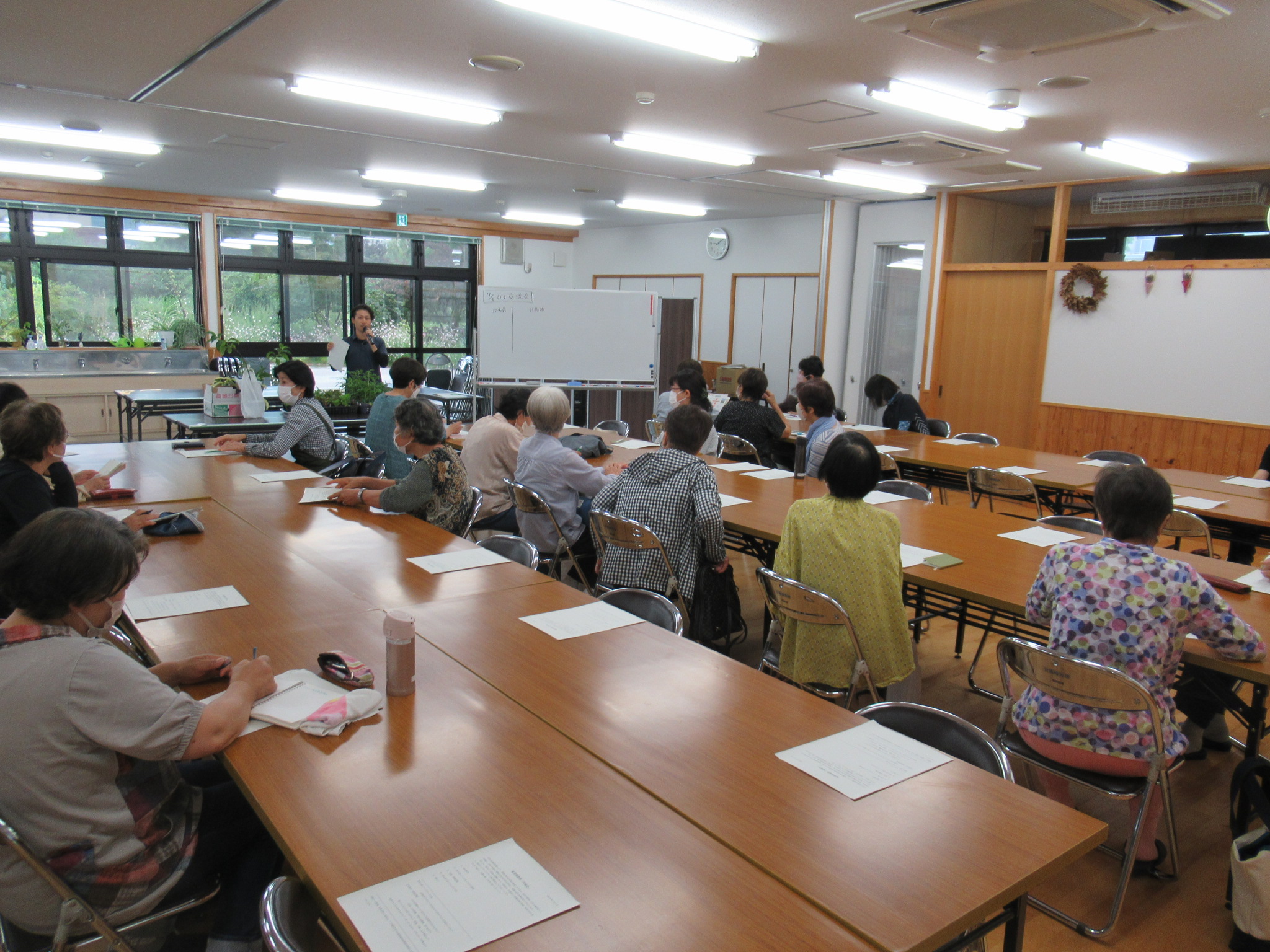 持ち寄っていただいた花苗の紹介をしていただいて交換会をしたり、悩み事の相談など作業の時とは