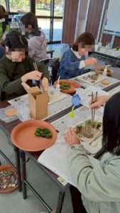 「苔」と言っても 何種類もあり 今日は先生がお持ちくださった中からお好きな苔を自分でチョイスしながら 世界観を作っていきます