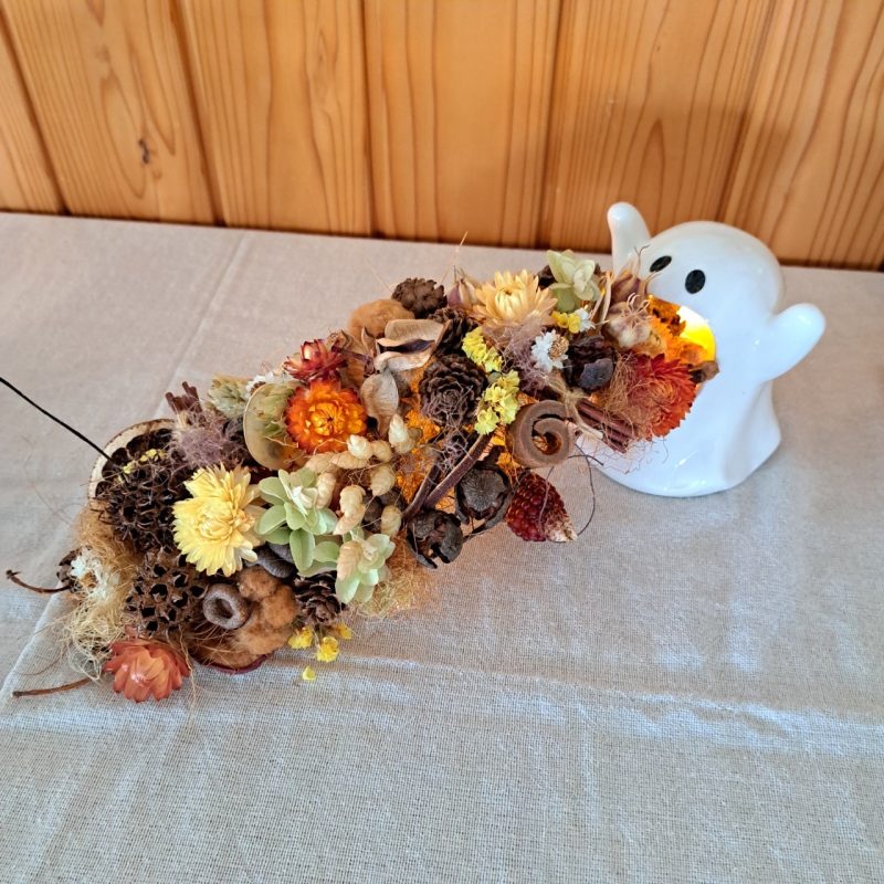 秋を楽しむドライフラワーと木の実のアレンジメント
