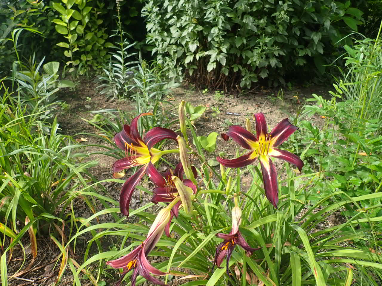 外側は黒っぽい紫色、中心は緑色の花を咲かせる