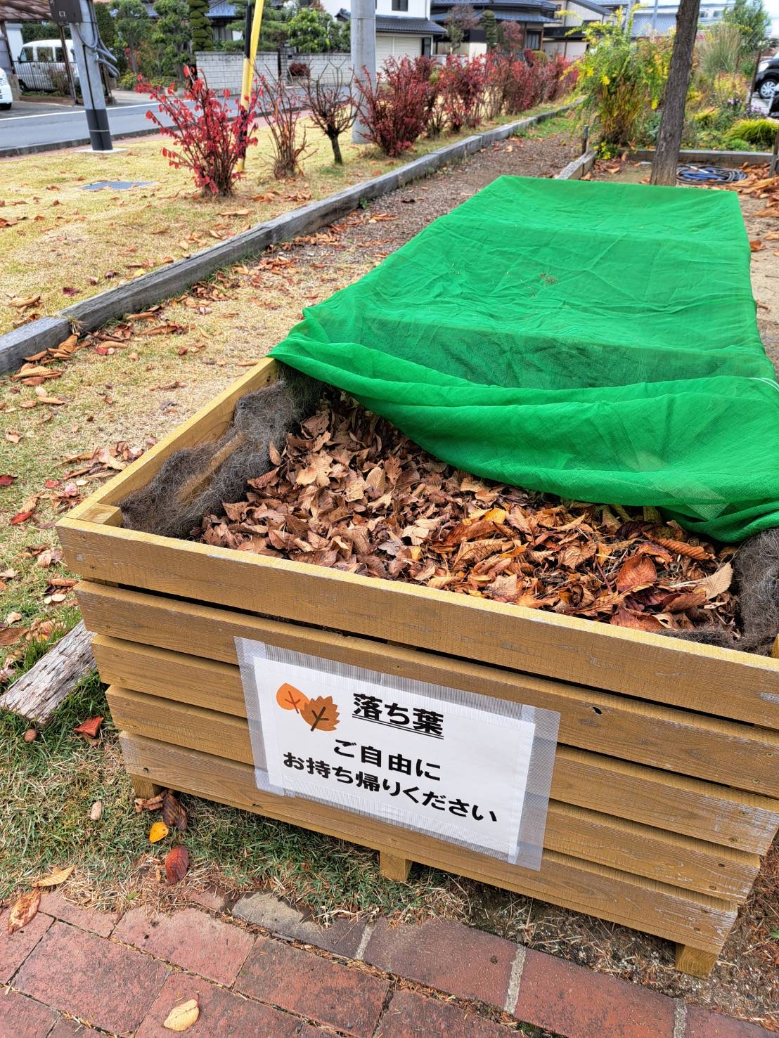 お知らせ・公園ニュース【篠ノ井中央公園】落ち葉ボックス設置しました2024.11.16 いつも篠ノ井中央公園をご利用いただき、ありがとうございます。 公園内で発生する資源の有効利用のため、北駐車場付近に落ち葉ボックスを設置いたしました。 ご希望の方は、自由にお持ち帰りください。※袋などはお持ちください。 ネットを開けたら必ず閉めていただきますよう、ご協力をお願いいたします。 投稿ナビゲーション
